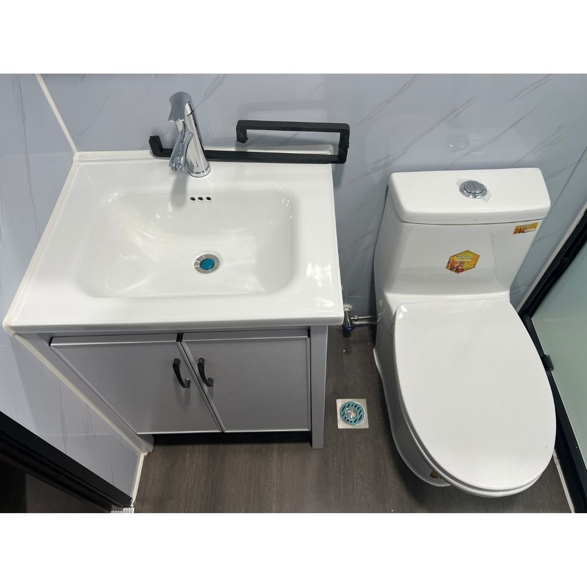 Layout:2 bedrooms, 1 bathroom with sink, toilet, shower amenities, 1 kithchen cupboard