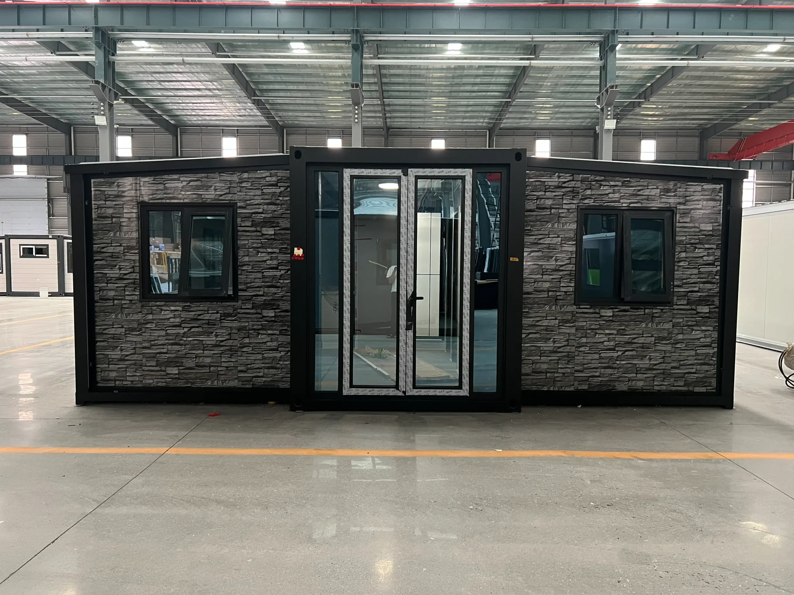 Walls and roofing are made from durable, impact-resistant panels such as EPS or Rockwool sandwich panels, designed to hold up against flying debris and heavy rain. - Sealed Construction:
