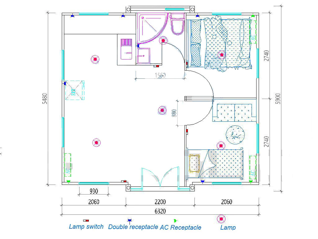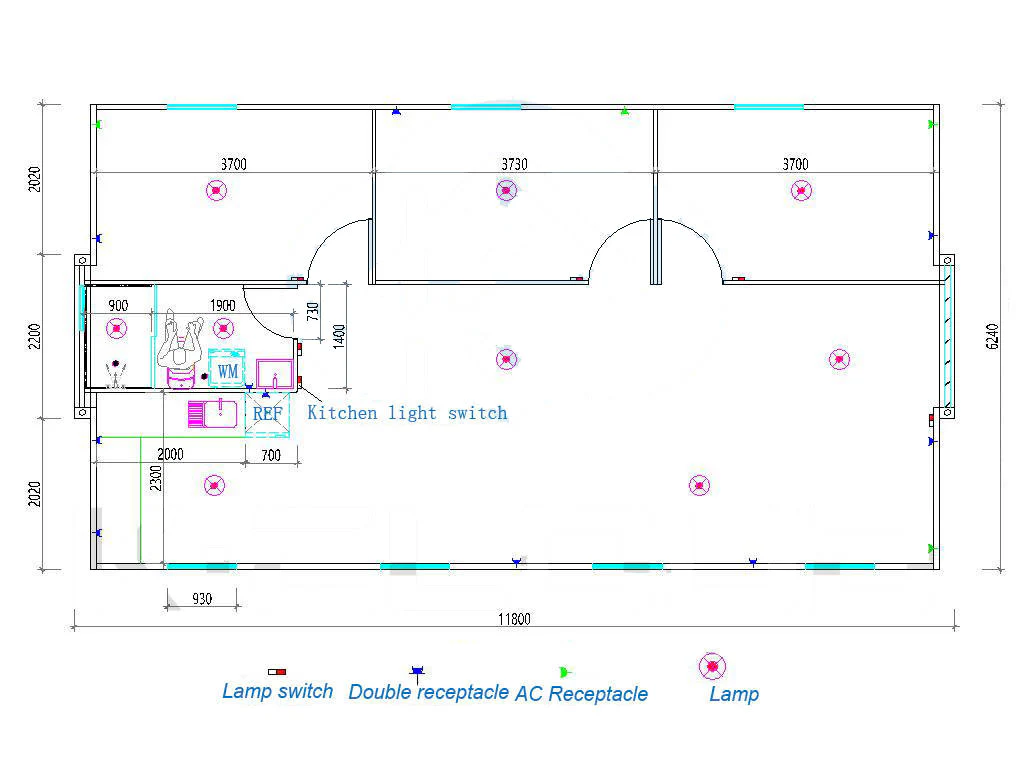 The prefab home is equipped with switches, sockets, electrical systems, plumbing, and lighting. Although the container home is equipped with a fully equipped kitchen, bedroom, and bathroom, you still need to prepare a flat foundation, water supply, power supply, and septic tank.